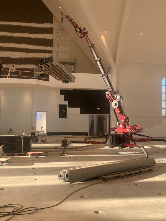 Vloerbedekking naar verdieping hijsen