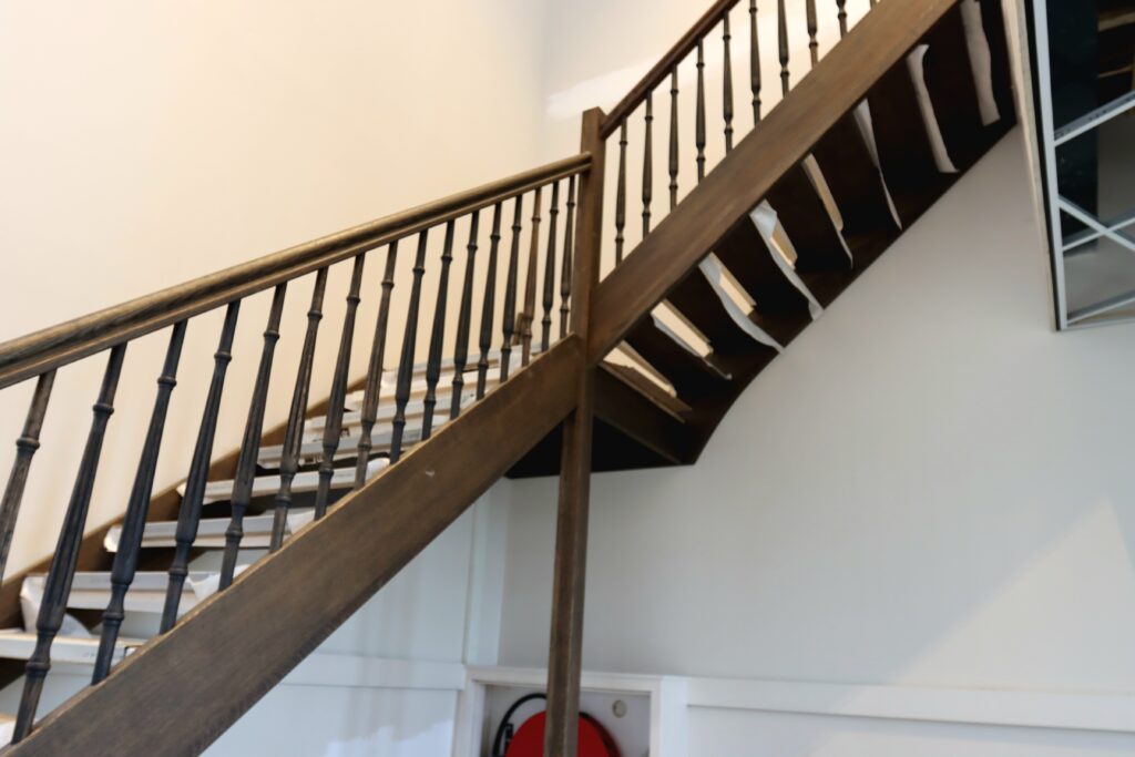 Trap naar de galerij inde hoek van de kerkzaal